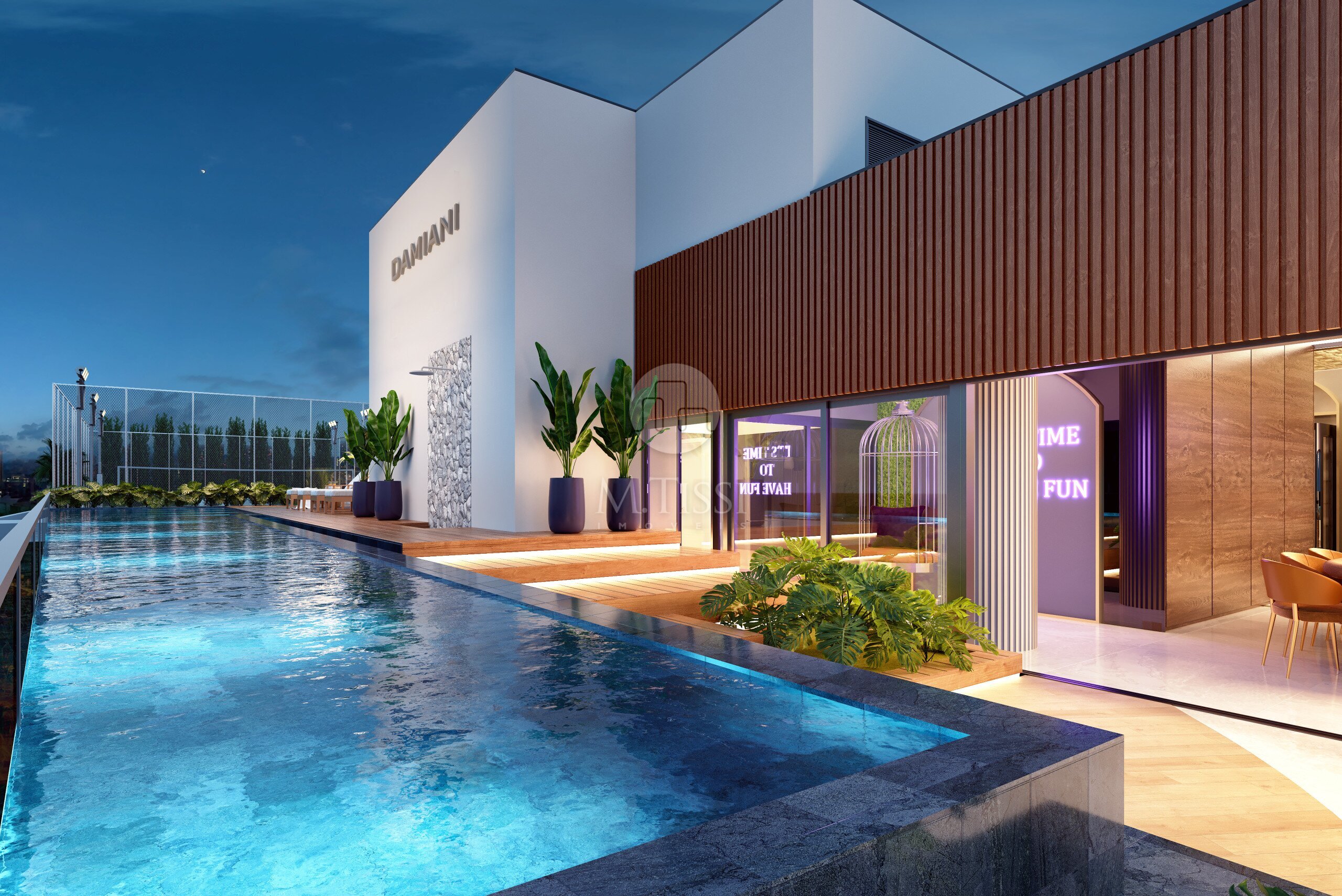 - Piscina com raia aquecida e incluso deck molhado;