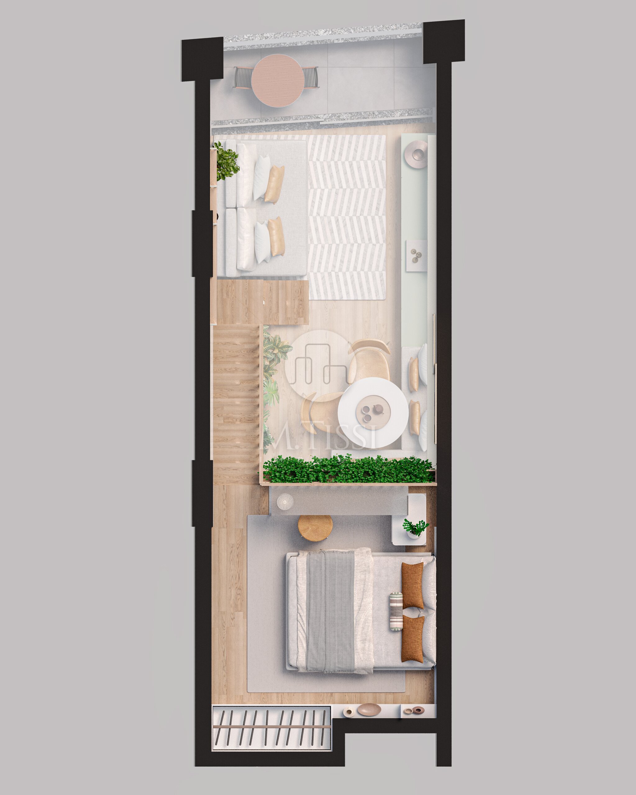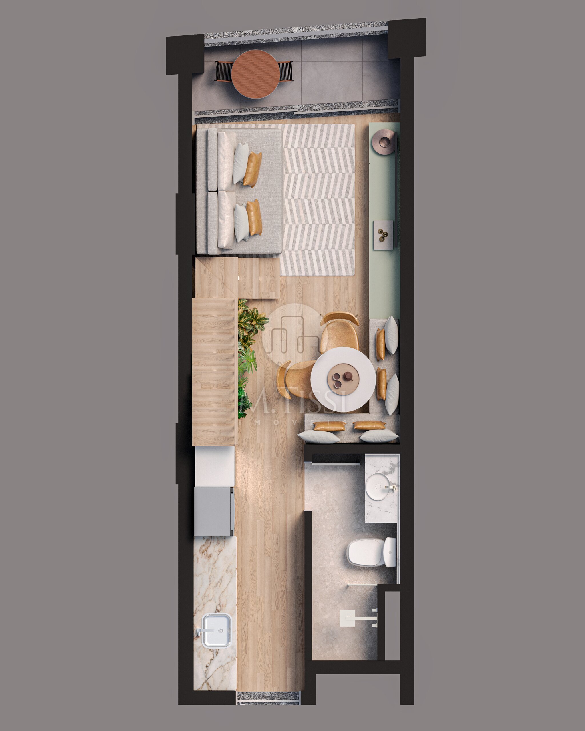 E além de tudo isso, você terá um duplex com 44 m². Está distibuído em: