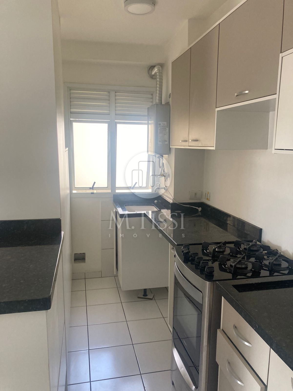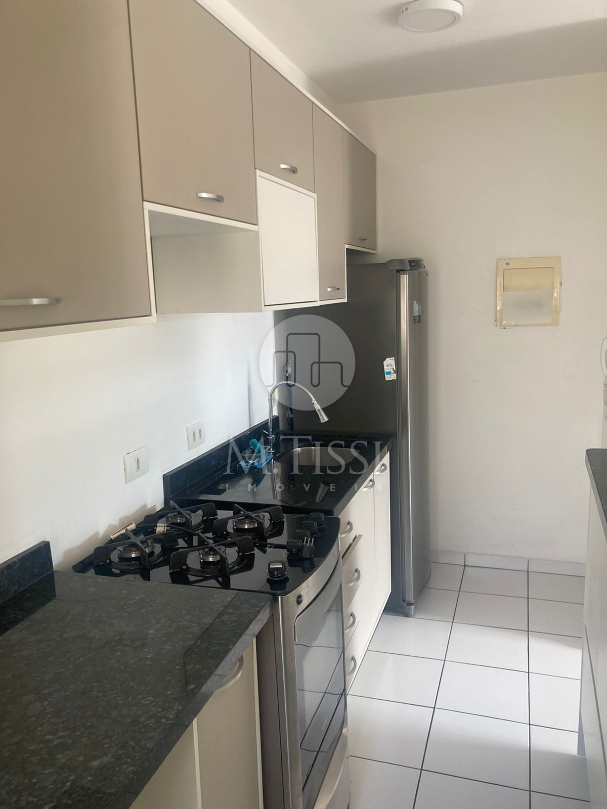- Cozinha com armários planejados, tampo em granito, fogão e geladeira;