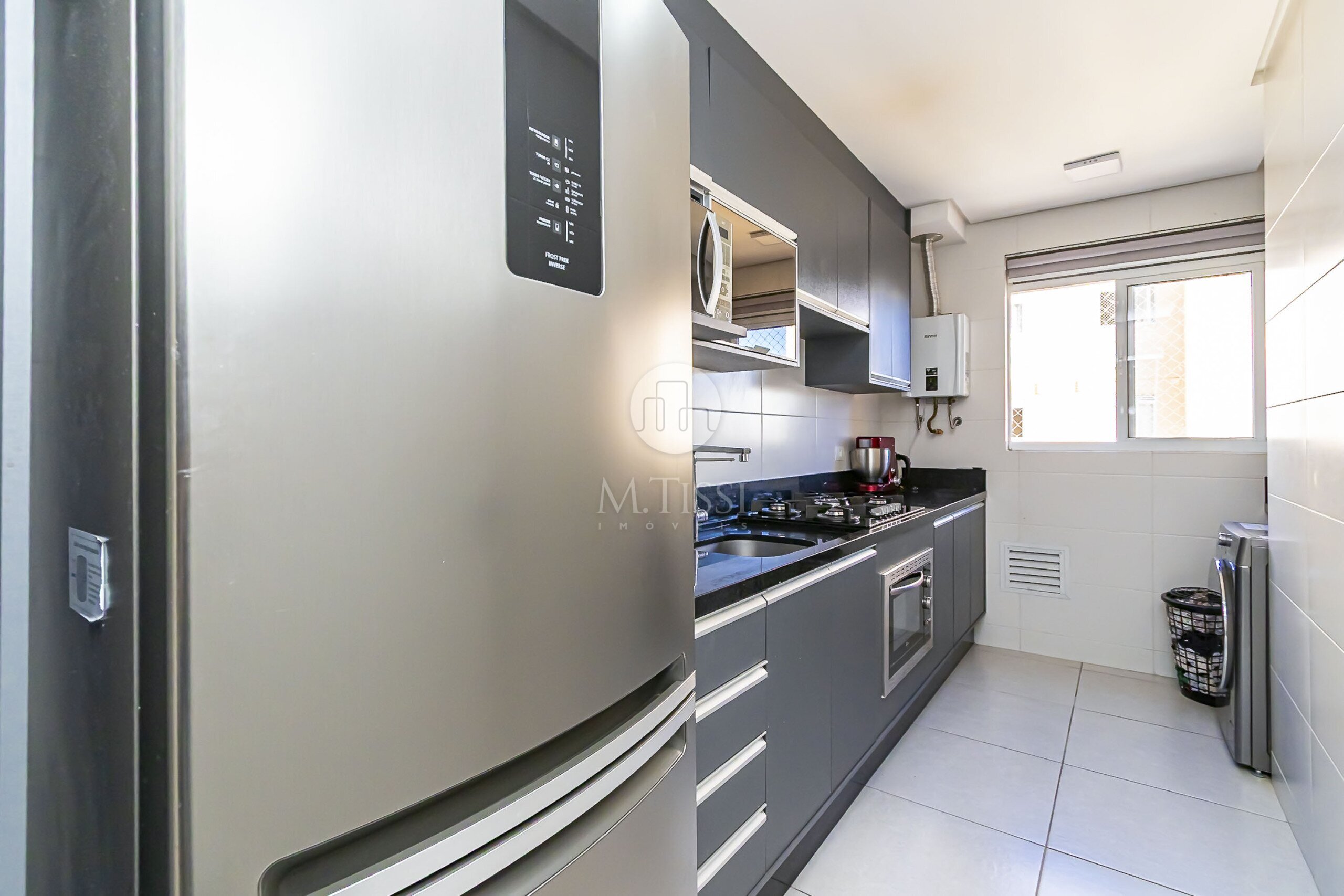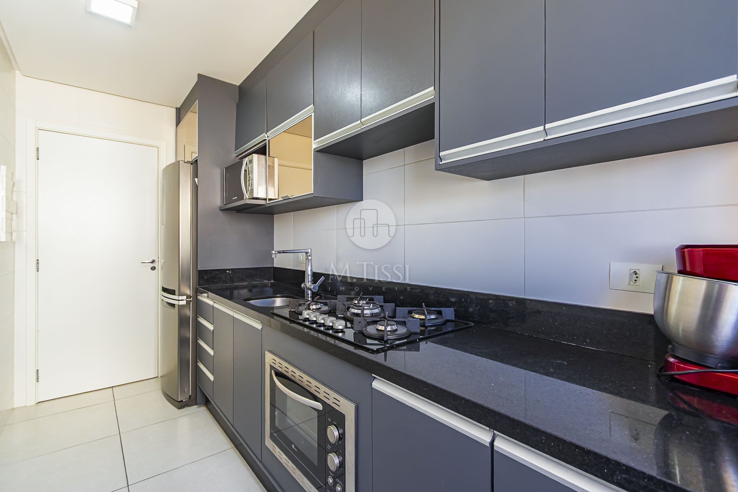 - Armários planejados e tampos em granito, forno elétrico e cooktop na cozinha;