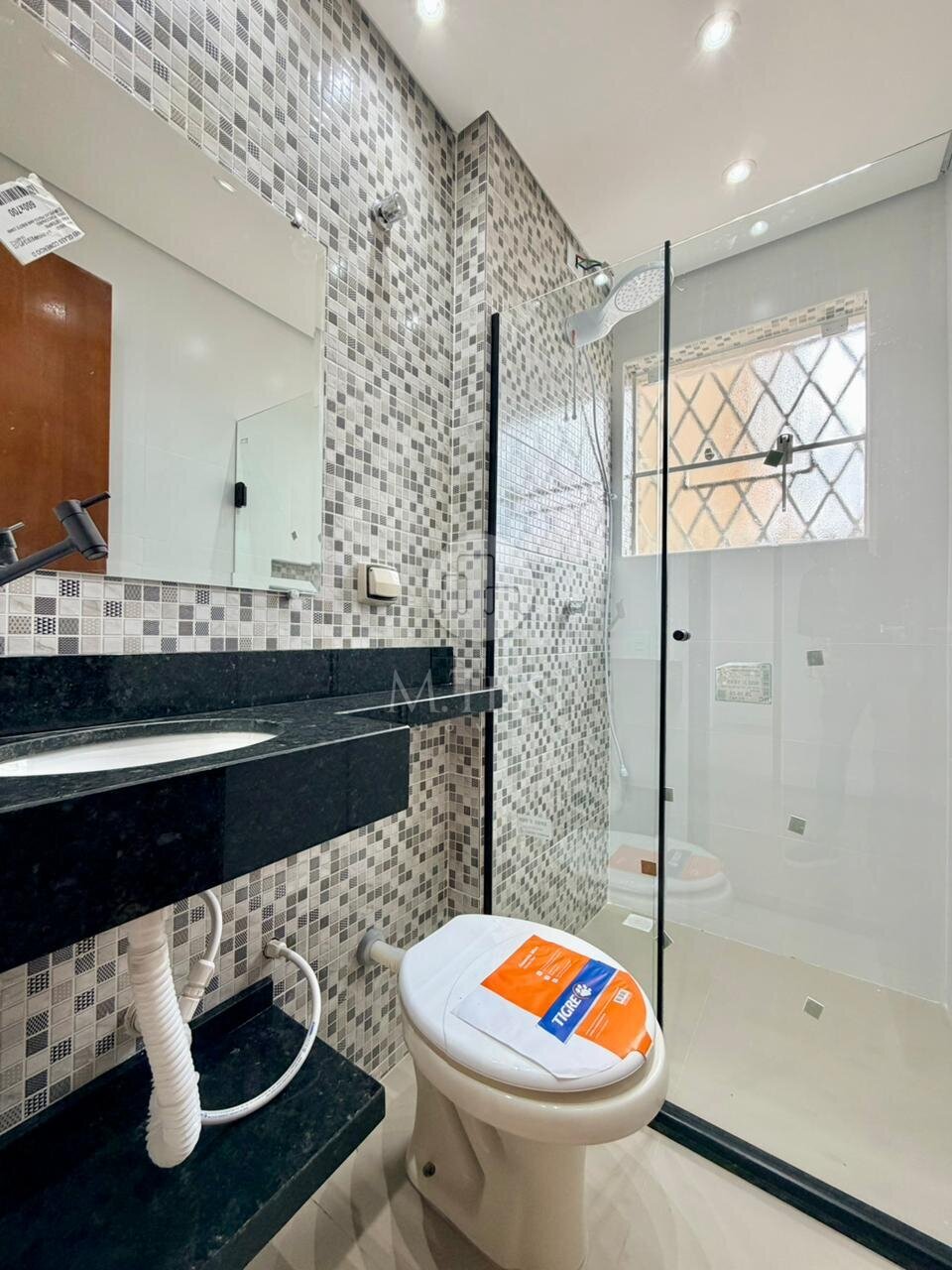 - Box blindex, pastilha decorativa, forro em gesso e tampo em granito;