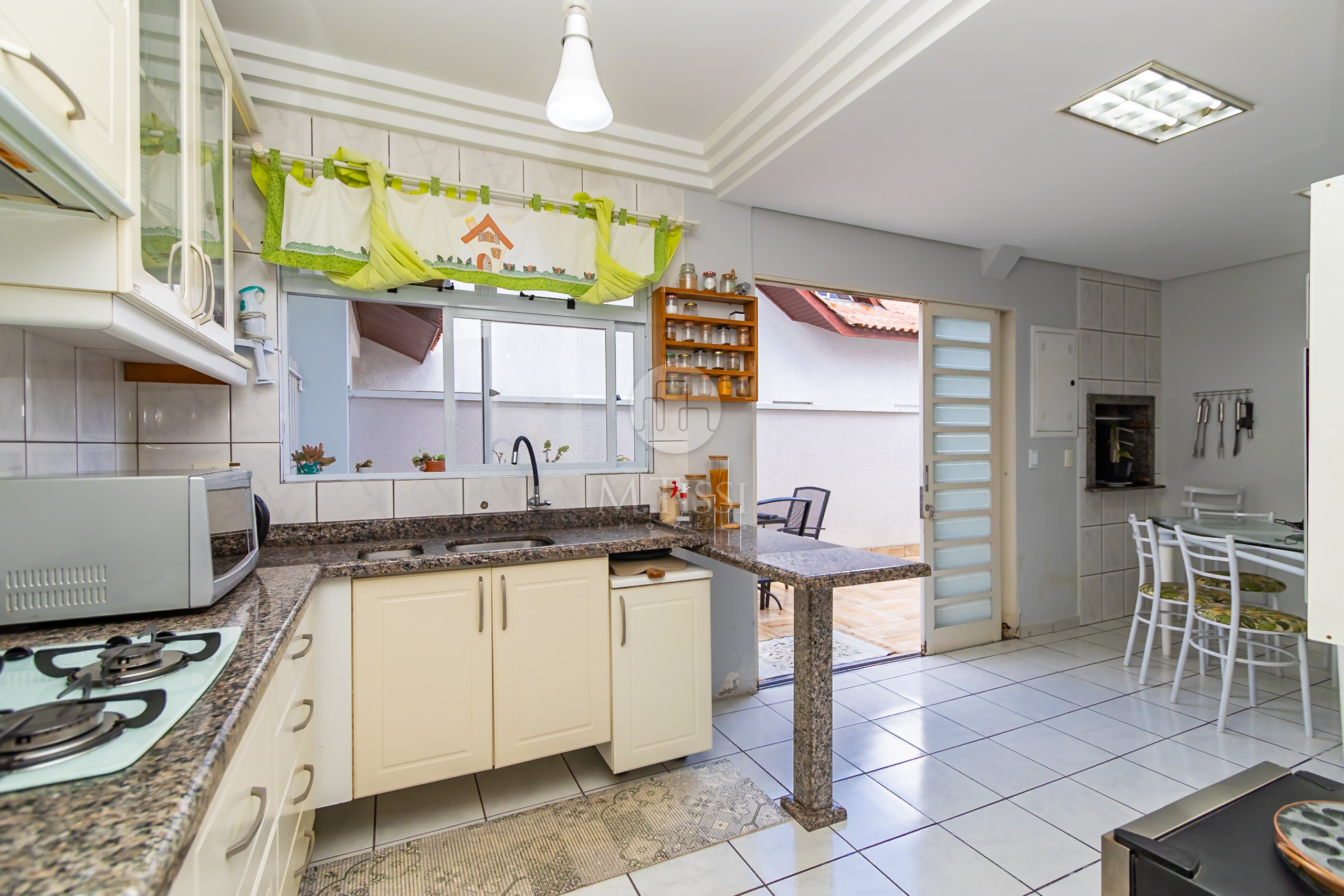 A residência possui 200 m² ( sendo 176 m² averbadas ), distribuída em: