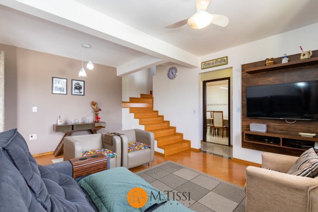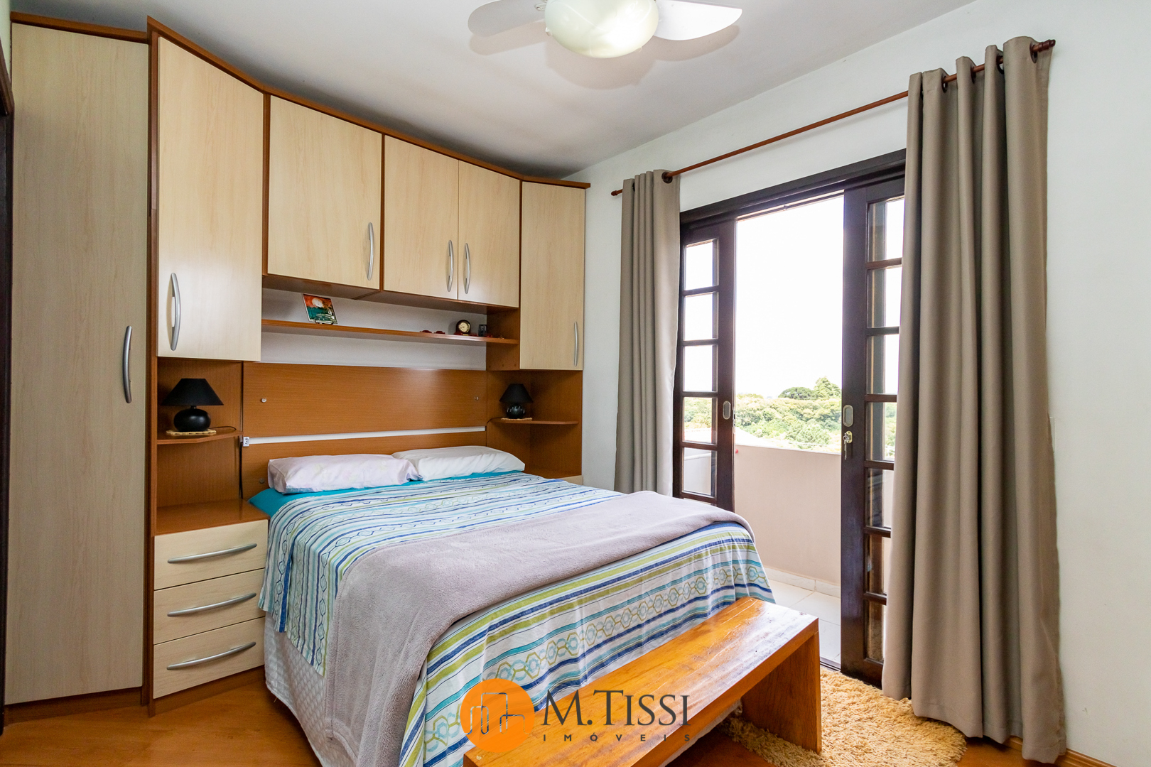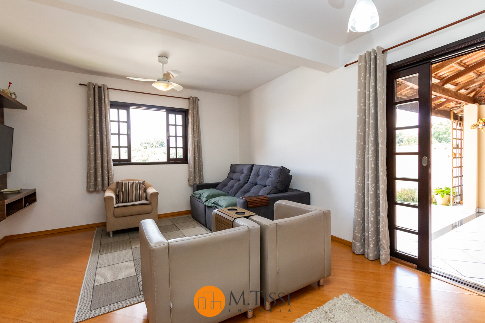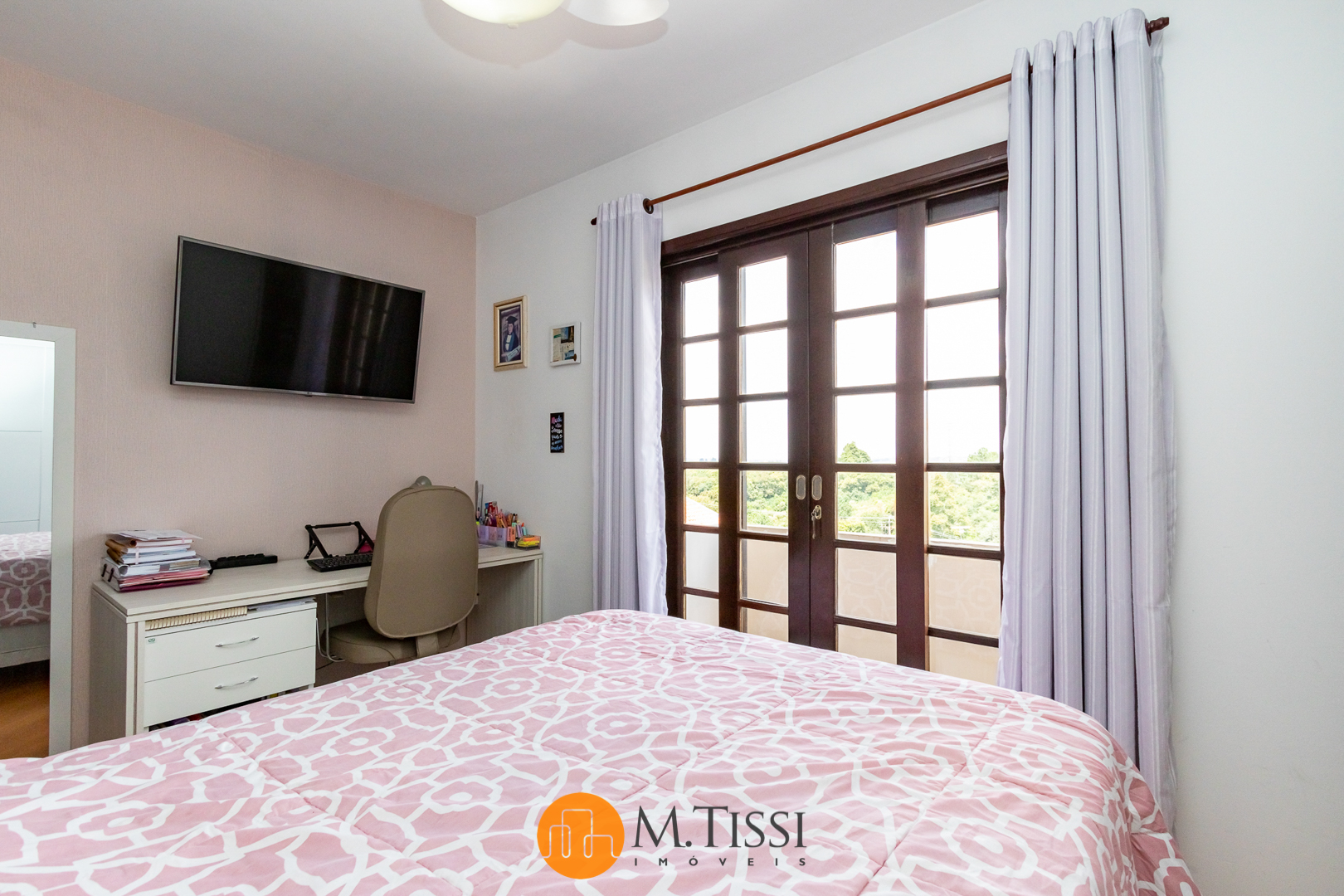 Com 100 m² construídos ( 85 m² averbados ), o sobrado possui preparação para a utilização do ático ( escada ). E pelo fato de estar em uma região alta, contempla uma bela vista para uma área de preservação ambiental.