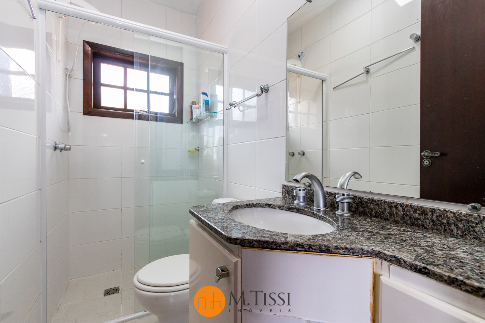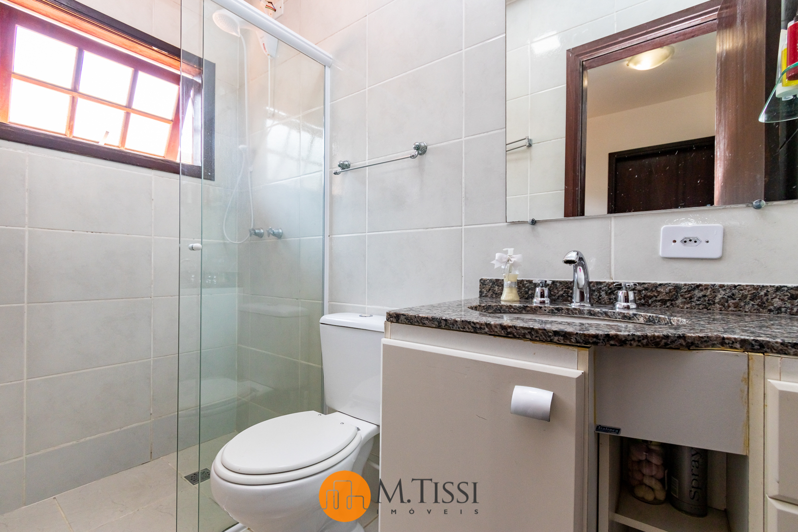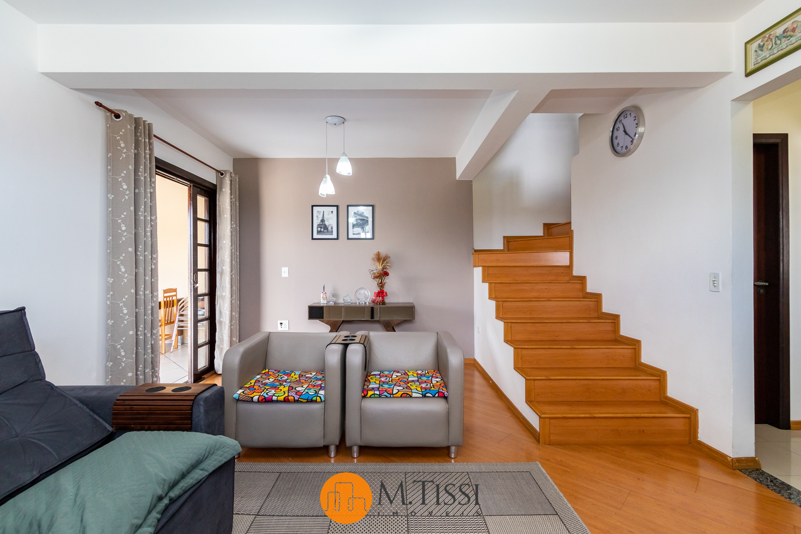 O sobrado possui 100 m² ( 85 m² averbados ) e já possui preparação para a utilização do ático ( escada ). E pelo fato de estar em uma região alta, contempla uma bela vista para uma área de preservação ambiental.