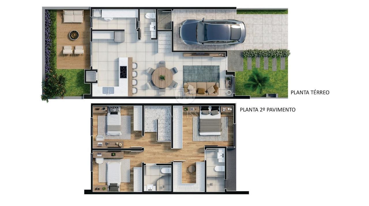 O sobrado possui 112 m² privativos e ainda possui um amplo quintal. Está distribuído em: