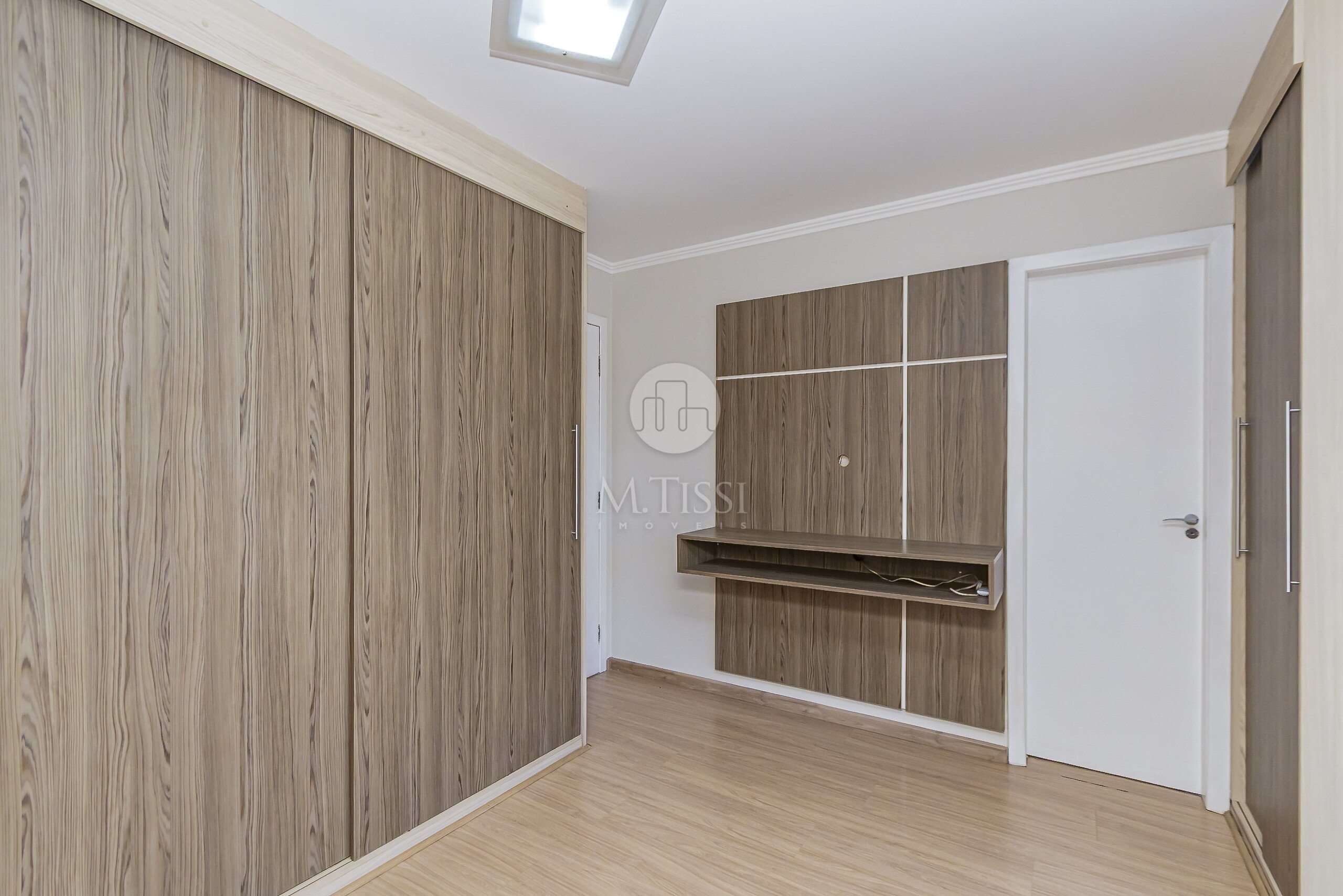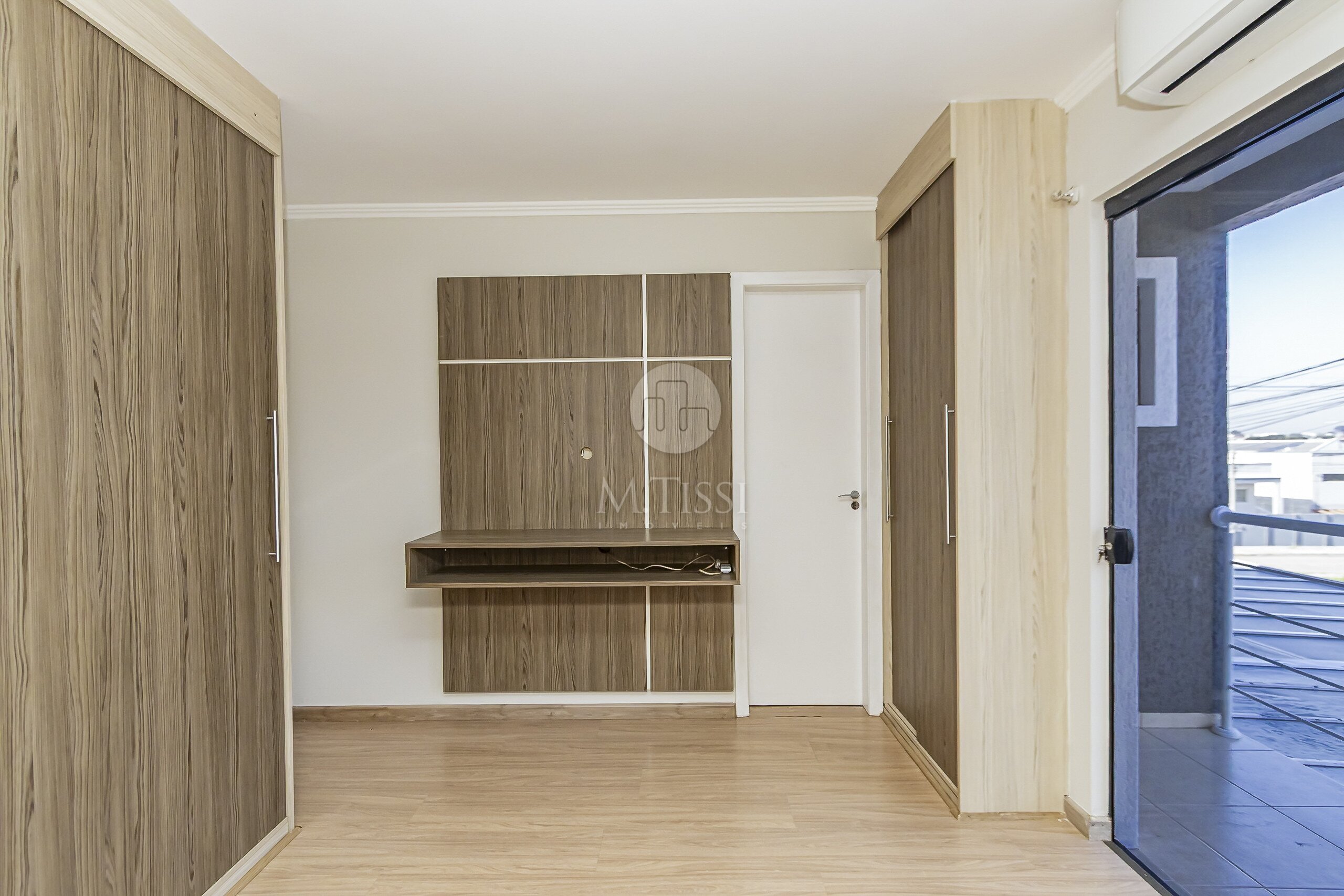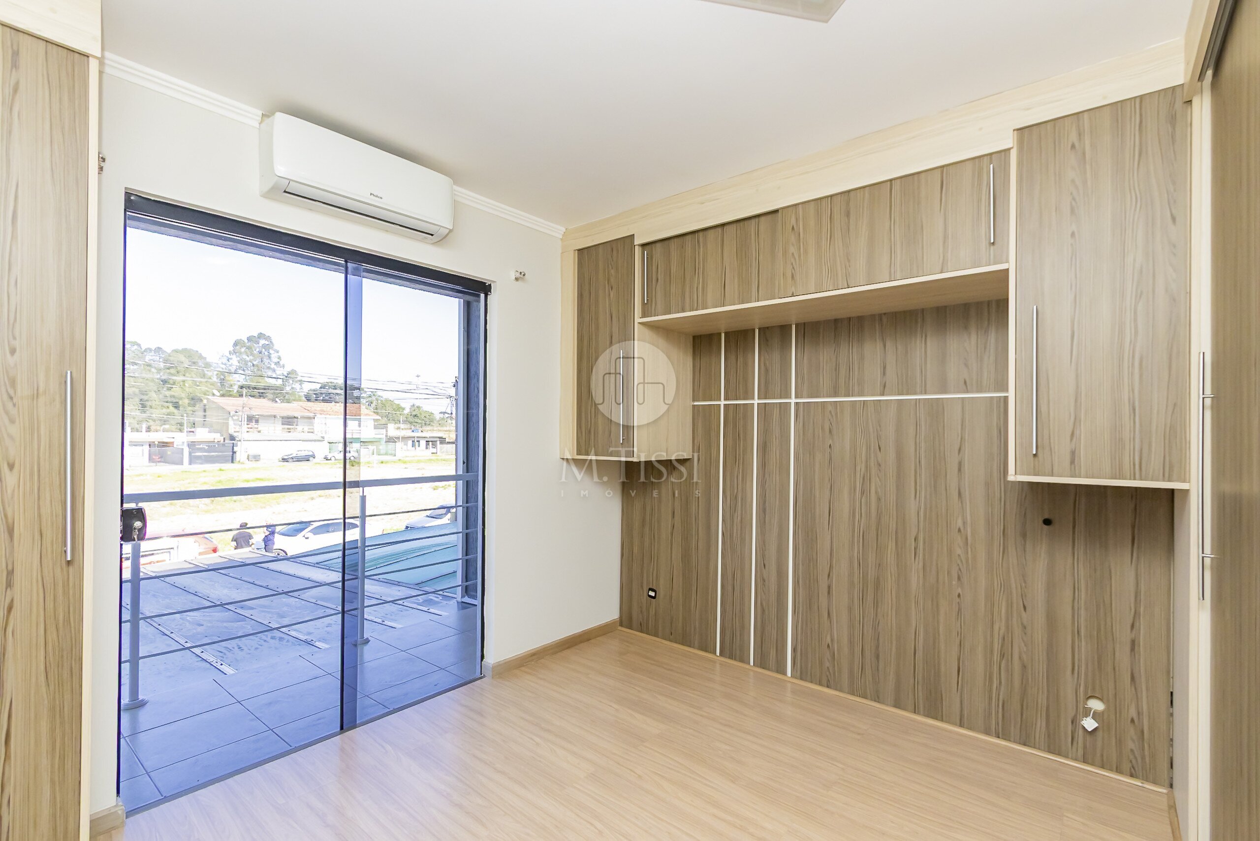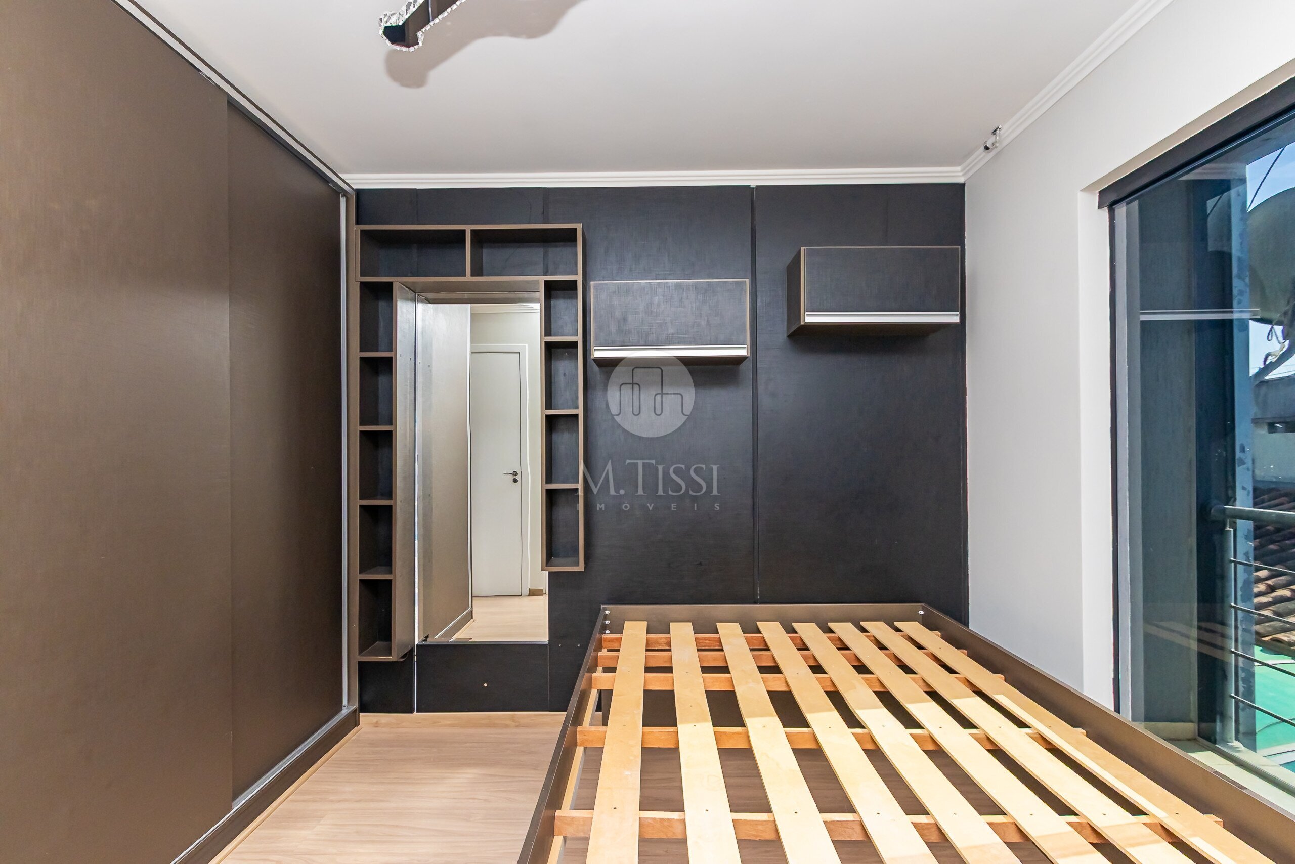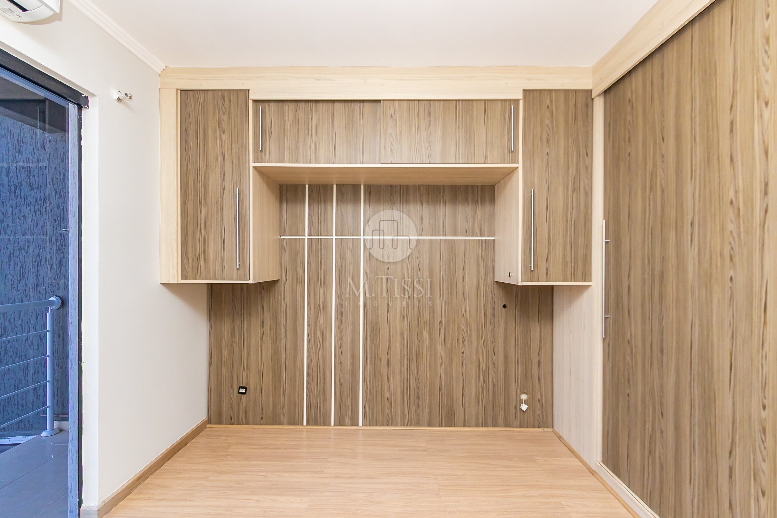- Suíte com vista para os fundos, tendo armários planejados, cama e sacada;